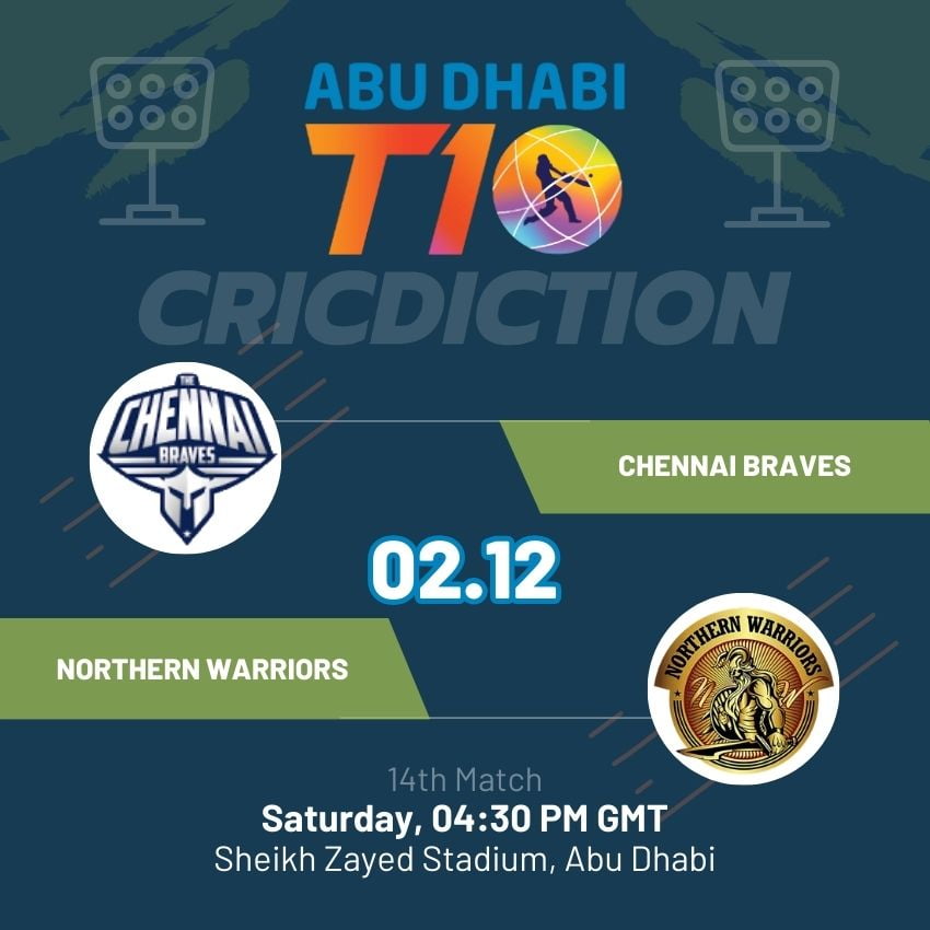 Fantasy Tips – Chennai Braves vs Northern Warriors, Abu Dhabi T10 League 2023, 14th Match. Who Will Win, On December 02, 2023