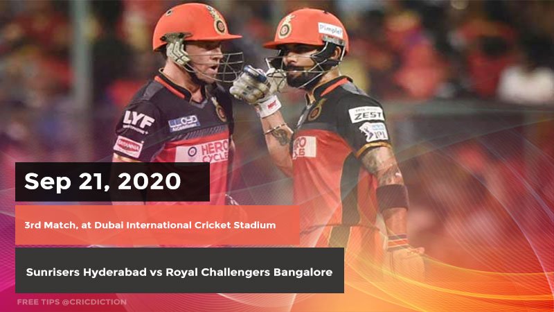 Match Preview – Today Cricket Match Prediction, Sunrisers Hyderabad vs Royal Challengers Bangalore, IPL T20 2020, 3rd Match. Who Will Win. On Sep 21, 2020
