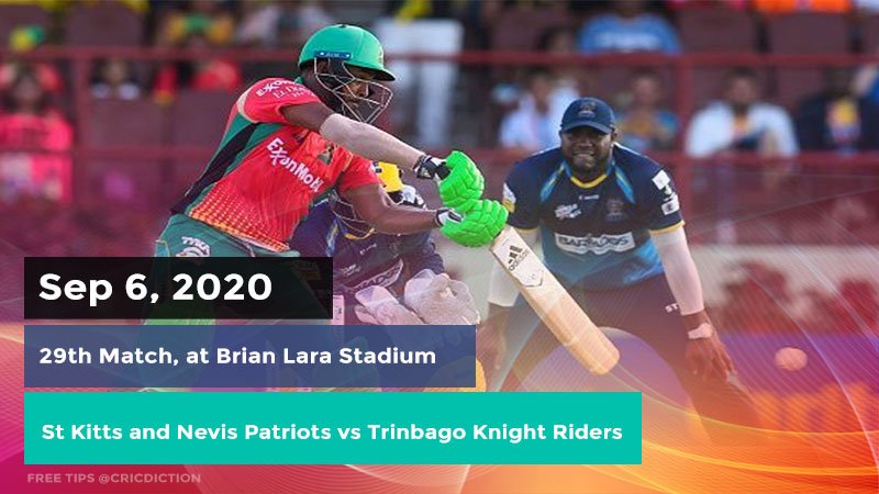 Match Preview – Today Cricket Match Prediction, St Kitts and Nevis Patriots vs Trinbago Knight Riders, CPL T20 2020, 29th Match. Who Will Win, Playing XI, Dream11 Fantasy Cricket Tips, Pitch Report. On Sep 06, 2020