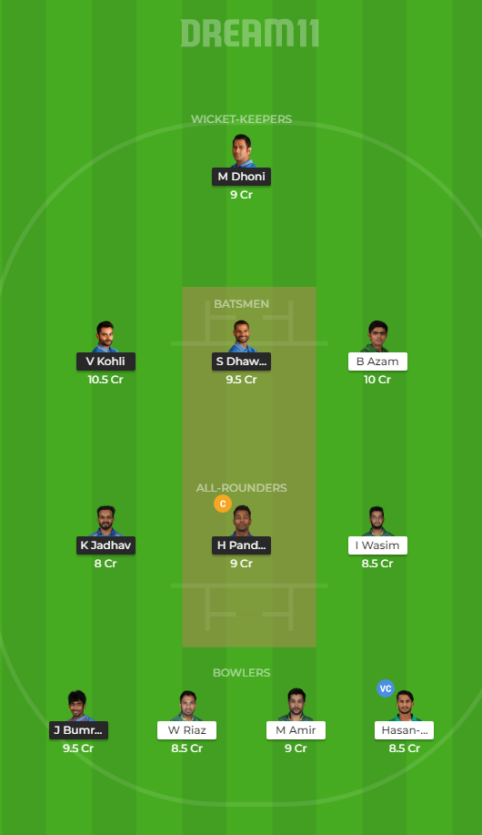 Bowler: Jasprit Bumrah, Hasan Ali, Wahab Riaz, Mohammad Amir.
