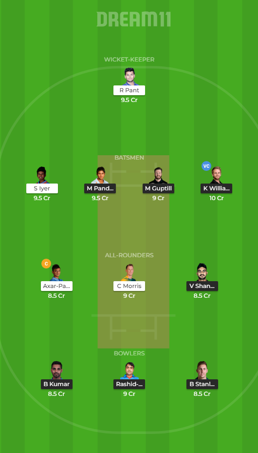 DC: Prithvi Shaw, Shikhar Dhawan, Colin Ingram, Shreyas Iyer (C), Rishabh Pant (WK), Axar Patel, Keemo Paul, Sherfane Rutherford, Trent Boult, Amit Mishra, Ishant Sharma