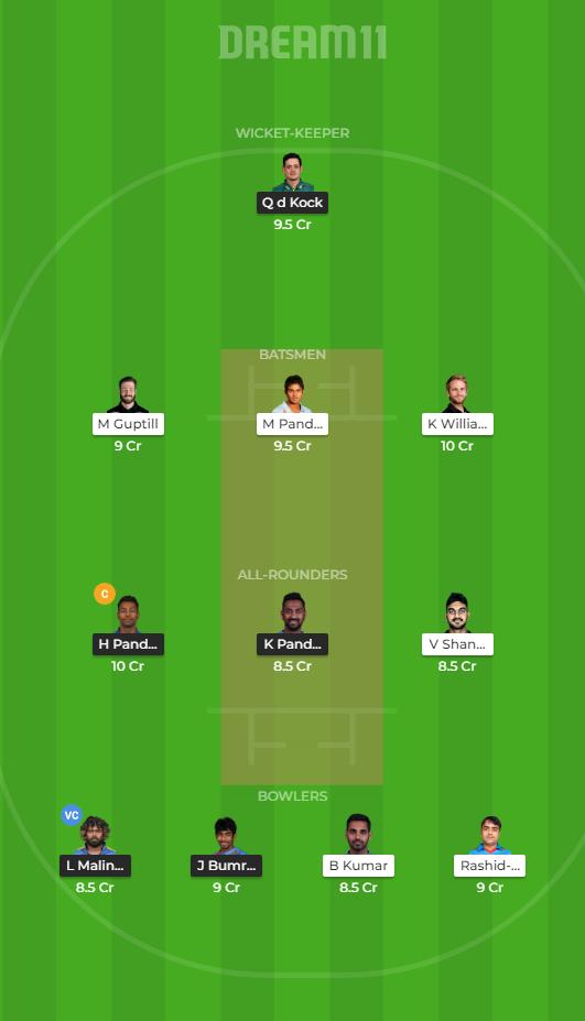 Rohit Sharma, Quinton de Kock, Evin Lewis, Suryakumar Yadav, Kieron Pollard, Hardik Pandya, Krunal Pandya, Barinder Sran , Rahul Chahar, Lasith Malinga, Jasprit Bumrah