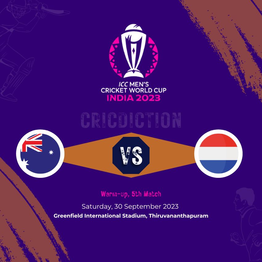 The fifth encounter of the ODI Cricket World Cup Warm-up 2023 is slated to take place on Saturday, September 30, 2023, featuring a clash between Australia and Netherlands. This highly anticipated match is scheduled to be held at the Greenfield International Stadium in Thiruvananthapuram.