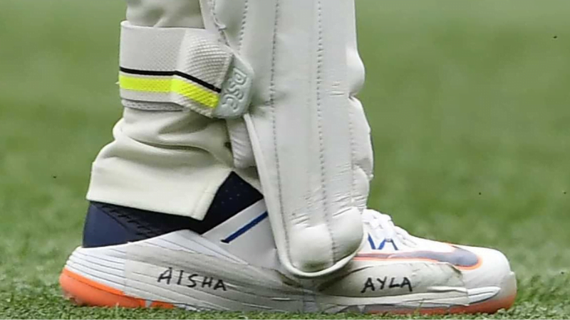 During the second Test in Melbourne, a close-up photo showed Khawaja's shoes with his daughters' names taped to them.
