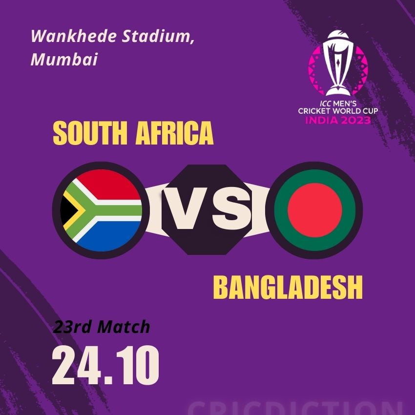 The excitement continues as the 23rd match of the ICC ODI Cricket World Cup 2023 is on the horizon. Scheduled for Tuesday, 24th October 2023, this clash will see South Africa and Bangladesh face off at the Wankhede Stadium in Mumbai. Cricket enthusiasts can certainly look forward to another thrilling encounter on the field.
