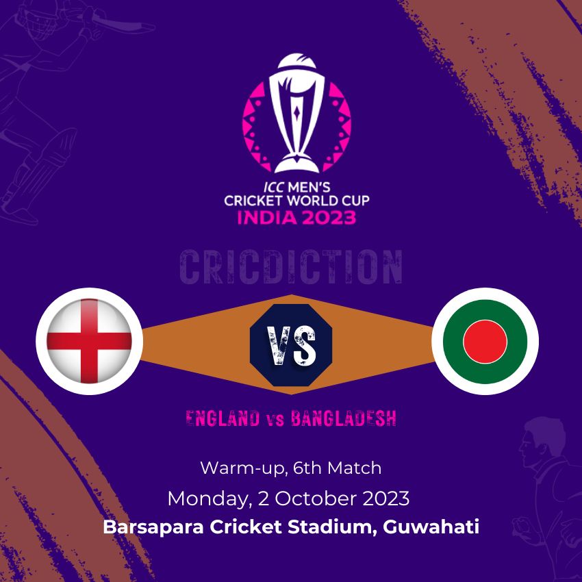 The excitement continues as the 7th match of the ODI Cricket World Cup Warm-up 2023 is on the horizon. Scheduled for Monday, 2nd October 2023, this clash will see England and Bangladesh face off at the Barsapara Cricket Stadium in Guwahati. Cricket enthusiasts can certainly look forward to another thrilling encounter on the field.