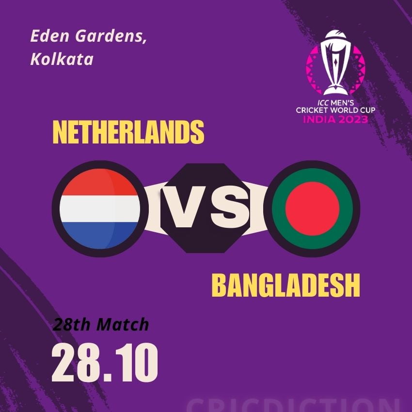 The excitement continues as the 28th match of the ICC ODI Cricket World Cup 2023 is on the horizon. Scheduled for Saturday, 28th October 2023, this clash will see Netherlands and Bangladesh face off at the Eden Gardens in Kolkata. Cricket enthusiasts can certainly look forward to another thrilling encounter on the field.