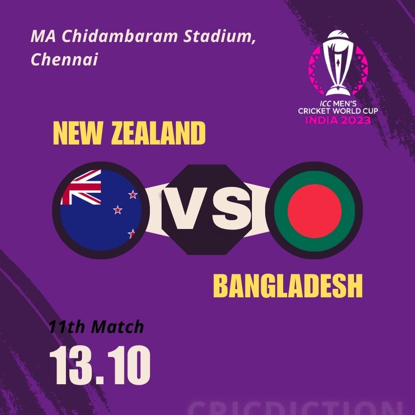 The excitement continues as the 11th match of the ICC ODI Cricket World Cup 2023 is on the horizon. Scheduled for Friday, 13th October 2023, this clash will see New Zealand and Bangladesh face off at the MA Chidambaram Stadium in Chennai. Cricket enthusiasts can certainly look forward to another thrilling encounter on the field.