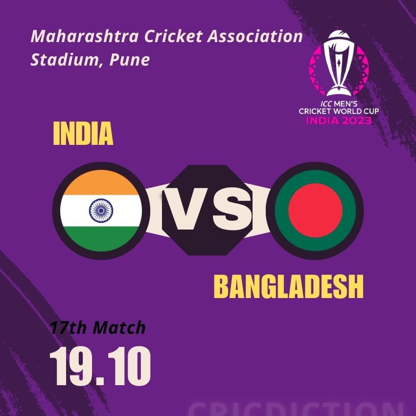 The excitement continues as the 17th match of the ICC ODI Cricket World Cup 2023 is on the horizon. Scheduled for Thursday, 19th October 2023, this clash will see India and Bangladesh face off at the Maharashtra Cricket Association Stadium in Pune. Cricket enthusiasts can certainly look forward to another thrilling encounter on the field.